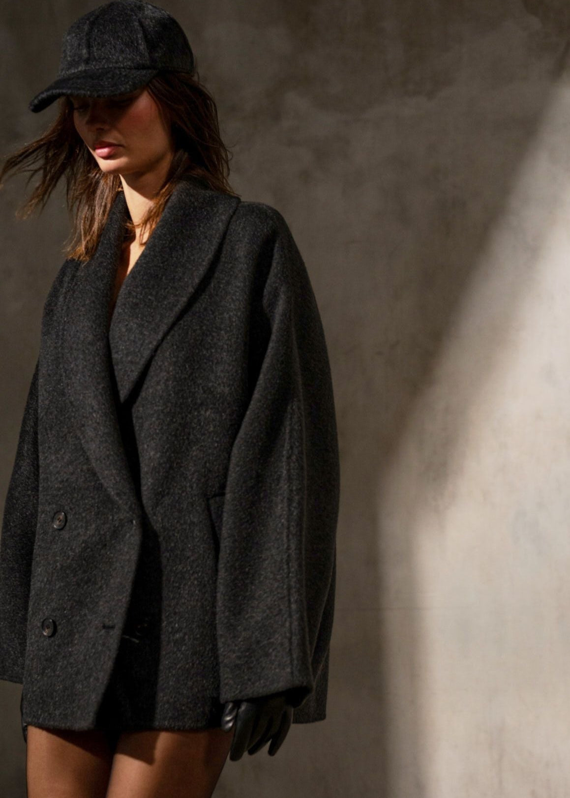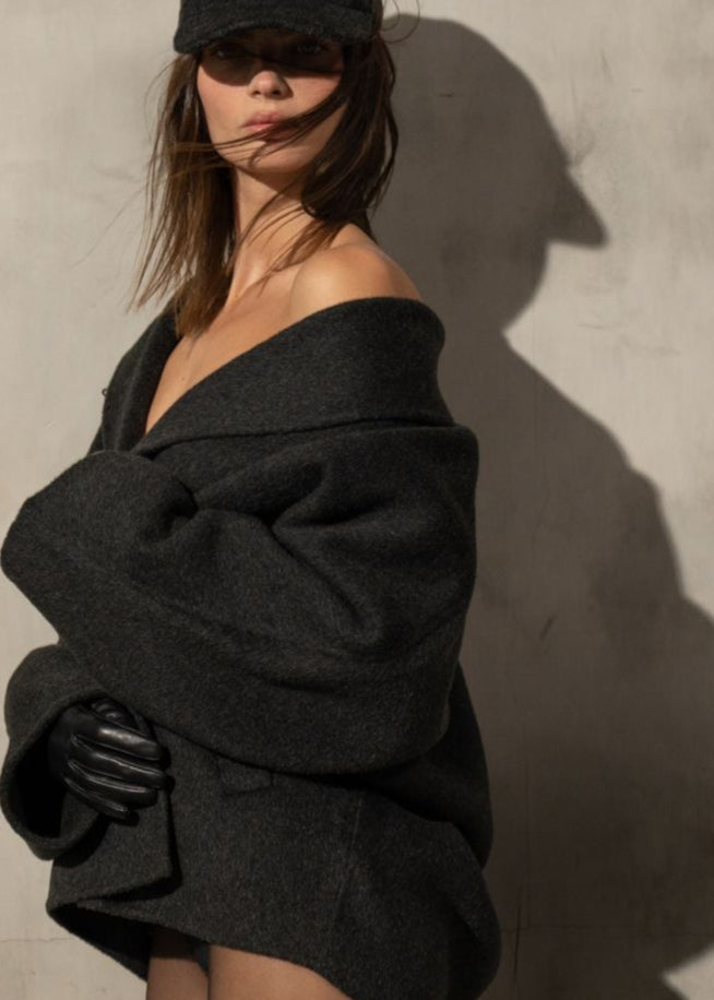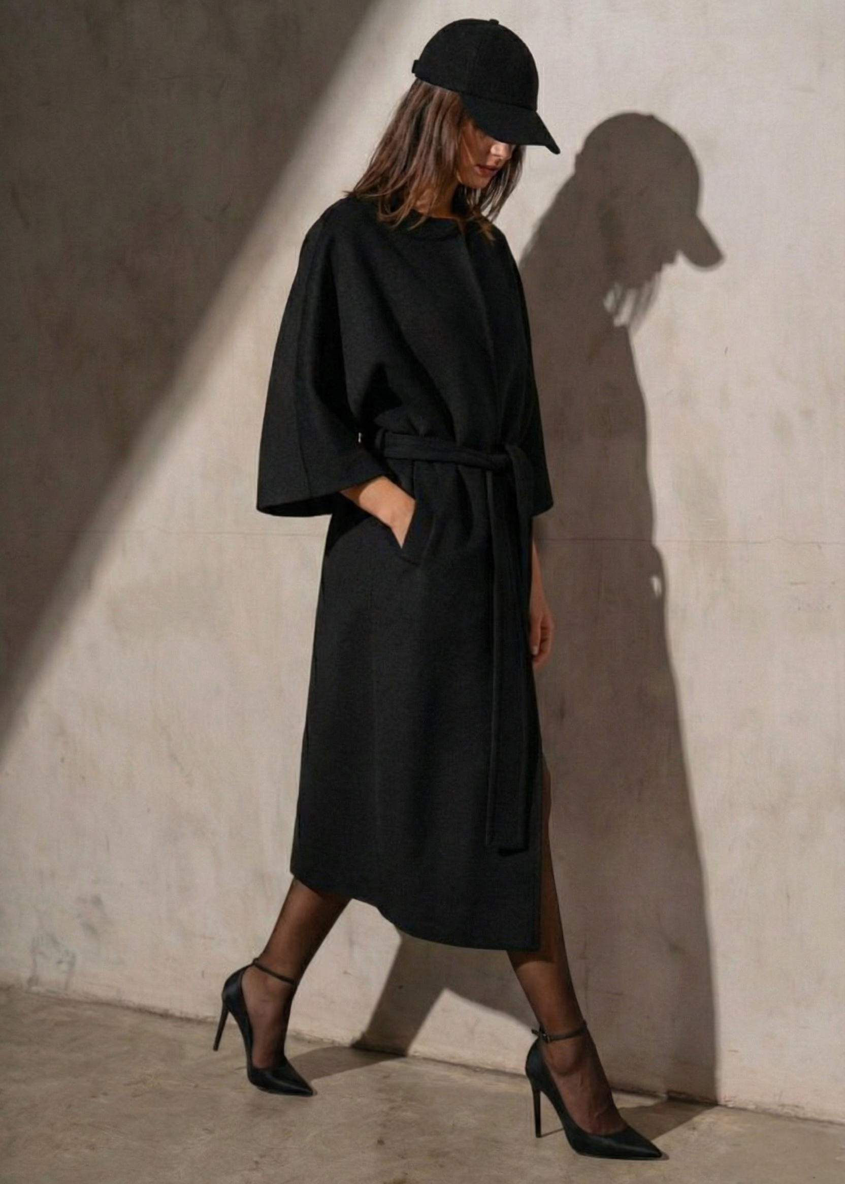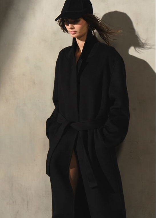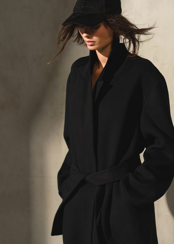 COLLARLESS CASHMERE BELTED COAT - Noir