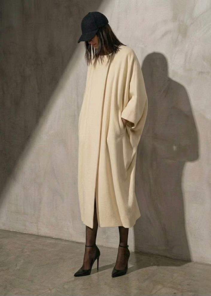 COLLARLESS CASHMERE BELTED COAT - Ivory