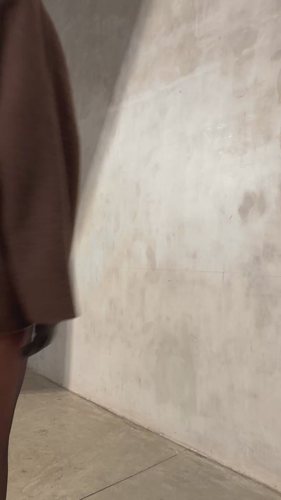 An unlined oversized wrap coat in a double-faced mohair wool blend. Sculptural yet fluid, it features dolman sleeves, a generous shawl collar, and an oversized silhouette that drapes with quiet precision.